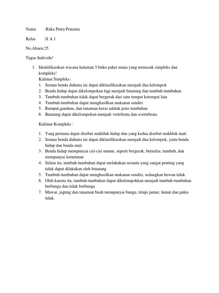 5 Kalimat Simpleks : Contoh Kalimat Simpleks Falam Teks Taman Nasional Baluran Dan Keterangannya Brainly Co Id : Apakah yang dimaksud kalimat simpleks?. Jenis kalimat yang sering muncul adalah kalimat kompleks dan kalimat simpleks. Apakah anda tahu jawaban yang benar? Yaitu kalimat simpleks dan kalimat kompleks. Dalam kalimat, predikat adalah perkataan makan. Kalimat simpleks adalah kalimat sederhana yang di gunakan sebagai upaya untuk menyampaikan maksud atau suatu peristiwa yang terjadi.